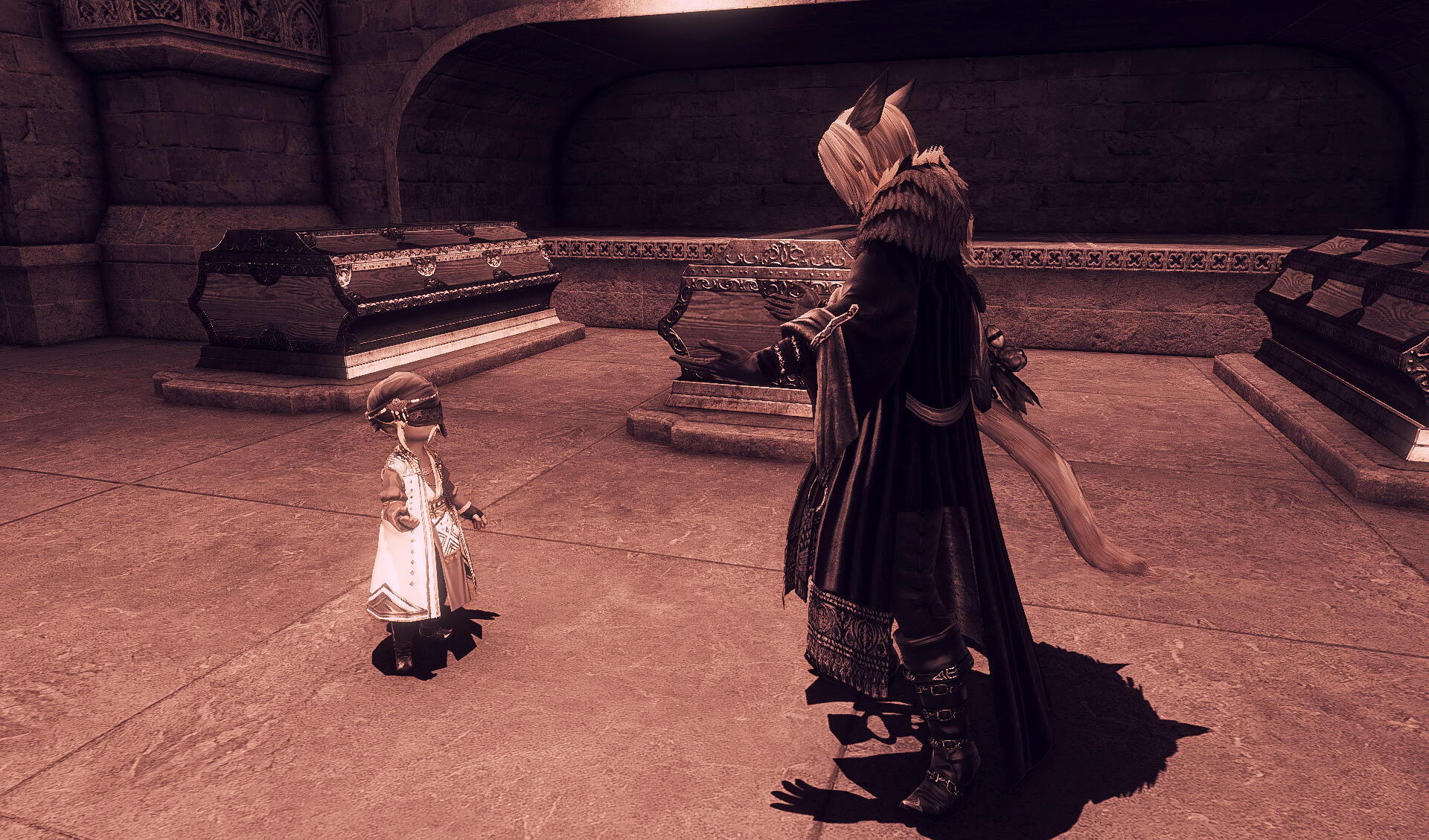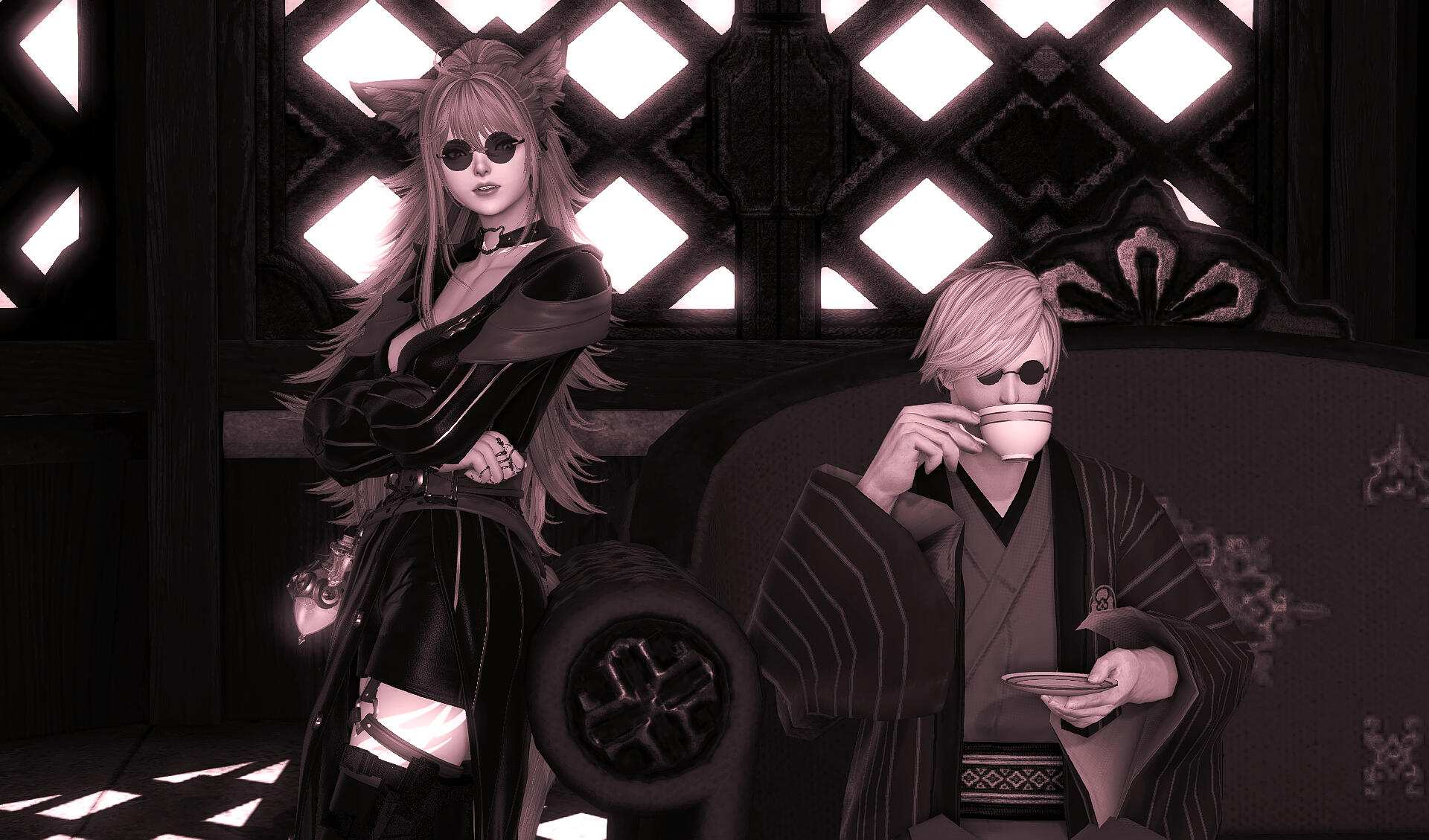 P’riya and P’ierro are a mix between the keepers of the moon tribe and the Seeker of the Sun tribe. Their father, the dominant gene of the sun tribe, never stayed in one place for too long and traveled often. So it came as no surprise their father was going to be absent from their lives along with possibly many more of their segregated siblings throughout the world. Their mother, a traveling scholar, had little to no choice but to settle down in Ul'dah while undergoing the pregnancy with the twins. While the pregnancy was a success, it left her eternally ill.Renouncing her infants with an elder suncat who raised the two like they were her own. And since the twins didn’t show much moon on their side, they were given no issues on the matter.As the twins got older, their adopted mother didn’t hide the truth from them to avoid any conflicting information or rumors that could spiral against them. P’ierro wasn’t affected by this information, but P’riya was heavily impacted by the women of their tribe. She was overall different and desired change; she was known as the oddball who preferred her silly little concoctions. Crafting strange and new beverages and liquors. She would often get teased by the women for showing an overall disgust every time a male showed interest in her.She was overly afraid to express her sexuality for fear of being shunned. The feeling of captivity was dreadful, but she always found relief in confiding in her brother P'ierro. The two were inseparable and he would always encourage her hobbies and support her apparitions.The brother was often alone if he wasn't with his sister. Like his sister, their tribe categorized his strange fascination with his studies and interests as intangible. However, being a male of the tribe invited many undeserved advances from the women which would lead to harsh rejections. Resolving his problems to hide in the city limits. If any questions were raised about how often he was leaving for the city, he would just explain his pursuit of academic challenges and opportunities.P'ierro would absently be missing for about two days at a time before returning back to his village again. P'riya didn't have reason to suspect her brother of anything misleading and often teased him for running away from girls.